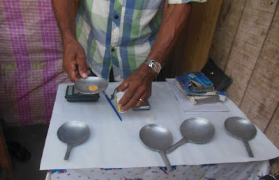Come le zone che abbiamo visto al sud dove intenso era il commercio delle pietre semipreziose grezze, questa è la zona delle sabbie aurifere e questo è in luogo di raccolta dei grossisti e degli intermediari. Come laggiù, anche qui arrivano dai fiumi vicini dove tutta la famiglia setaccia la sabbia, a raccogliere il piccolo frutto di un intenso lavoro. Mi apposto vicino ad uno stallo dove una signora non mi guarda con occhi cattivi, ma anziquasi miinvita ad assistere. Dopo un po' arriva una ragazzina con una veste un po' stracciata di almeno tre taglie più larga e tira fuori da una tasca una fialetta che contiene forse un grammo o poco più, di una polvere fine color giallo sporco con qualche pagliuzza luccicante all'interno e lo porge alla compratrice che lo esamina in controluce, con una pinzetta scarta qualche minuscolo pezzettino di pietra che con occhio abituato ha subito individuato, poi pulisce con attenzione la superficie del bilancino e ne versa il contenuto sopra. Fa un grammo e dodici. Rappresenta il raccolto di un paio di giorni di quella famiglia. Da sotto la gonna tira fuori un fascio di soldi bisunti e senza discussioni o trattative, da qualche banconota alla ragazza che dopo esserli nascosti se ne va verso il mercato delle verdure.